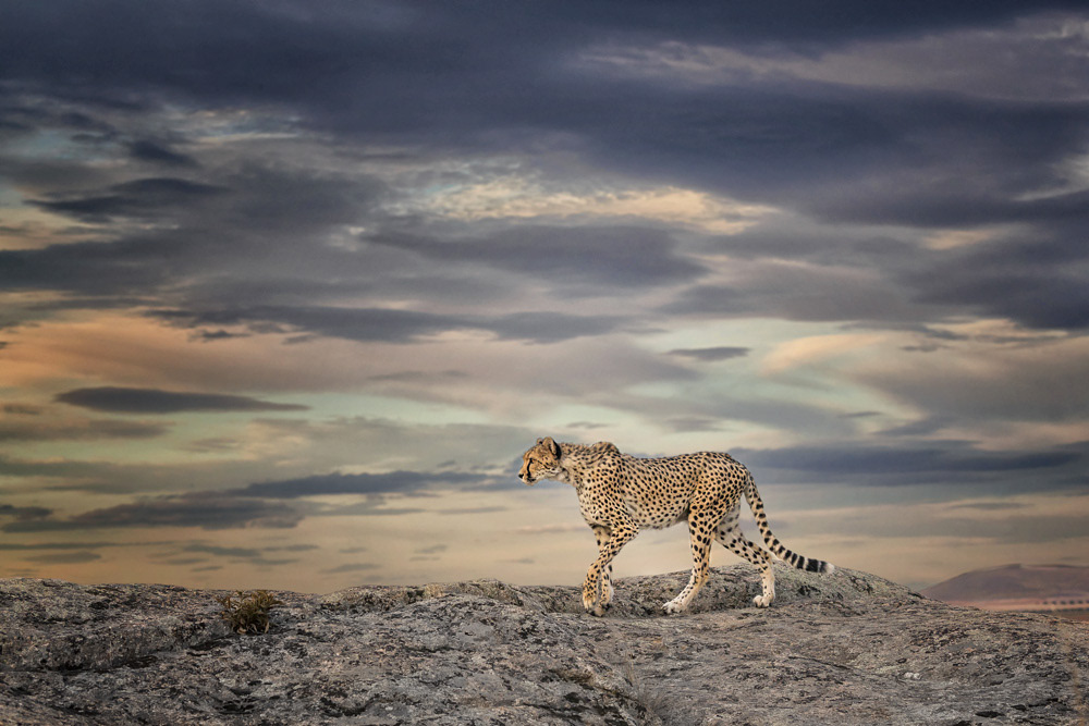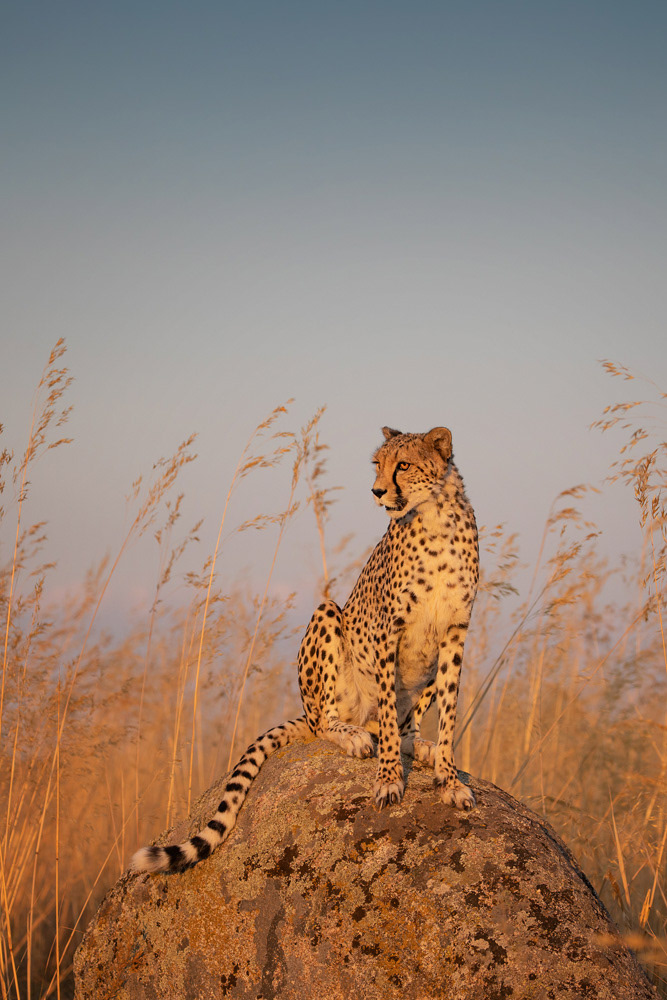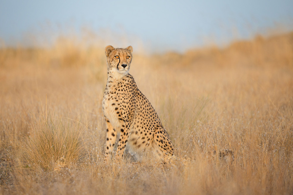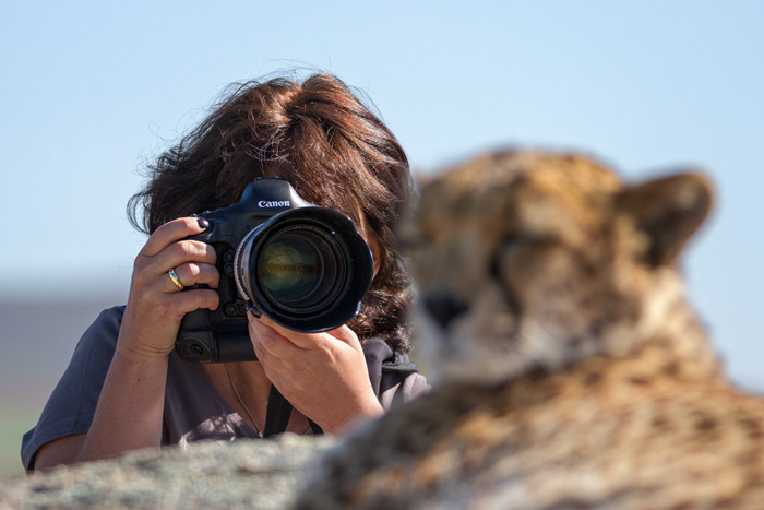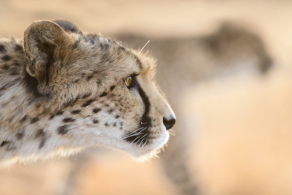 Als Objektiv empfehle ich einen Telezoom (70-200 oder 100-400). Es gibt zwar auch ausreichend Möglichkeiten Portraits aus nächster Nähe zu schießen, aber wenn die Geparden auf Kaninchenjagd gehen sollten, ist es von Vorteil einen Zoom zu haben. Ein Stativ ist nicht notwendig, da man meistens in Bewegung ist.