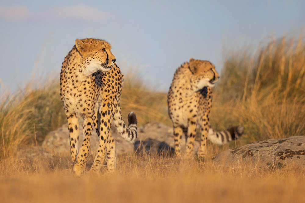 Die Geparden bestimmen den Ablauf und wir folgen ihnen auf ihrem Streifzug und der Suche nach Wildkaninchen.
